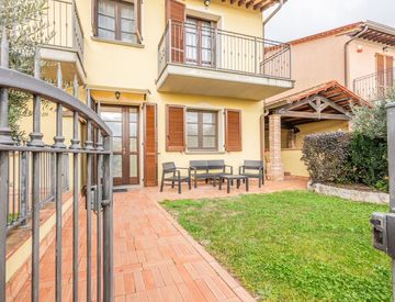 Esternamente si trova il giardino in parte verde ed in parte piastrellato coperto da una loggia, anche questa comodissima!