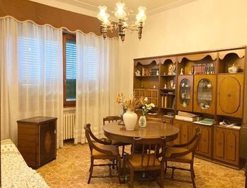 L'immobile è composto da: piano terra, ampio disimpegno di entrata, una cucina abitabile, una sala da pranzo, un soggiorno, uno studio oltre a servizio finestrato con doccia; dal disimpegno scala padronale che ci porta la primo piano dove troviamo una camera matrimoniale, una camera singola, un grande soggiorno con cucinotto finestrato ed uscita su balcone oltre bagno finestrato con vasca.