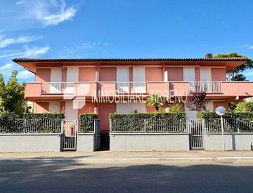 A metri 50 dal mare, Ronchi, proponiamo la vendita di una bella villetta a schiera con corte lastricata, posto auto coperto in autorimessa e ampio parco comune. L'ingresso è indipendente e la ca casa internamente si compone di soggiorno con angolo di cottura, bagno di servizio e balcone al piano rialzato; due camere da letto, bagno e balcone al piano primo. Si accede direttamente al mare attraversando il parco condominiale.