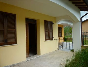 Nuova costruzione con giardino fronte e retro con portico e lastrico. Il villino è composto di due piani principali e un garage molto grande. Piano terra soggiorno, cucina e bagno e piano primo due camere, cameretta e bagno. terrazze su due livelli.
