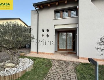 Nostra esclusiva. Proponiamo in vendita porzione di testa di trifamiliare. La soluzione si sviluppa su due livelli. Al piano terra zona living di 40 mq molto luminosa con cucina a vista, bagno finestrato e comodo ripostiglio. Al piano superiore tre spaziose camere da letto e secondo bagno. A completare un curatissimo giardino di 300 mq con caminetto e portico, due posti auto coperti. L'immobile è dotato di impianto fotovoltaico da 6 kw. Zona residenziale...