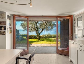 La posizione è tranquilla, soleggiata e dominante, con un panorama che spazia sul lago e sulle montagne circostanti e che regala una sensazione di privacy e apertura molto difficile da trovare.